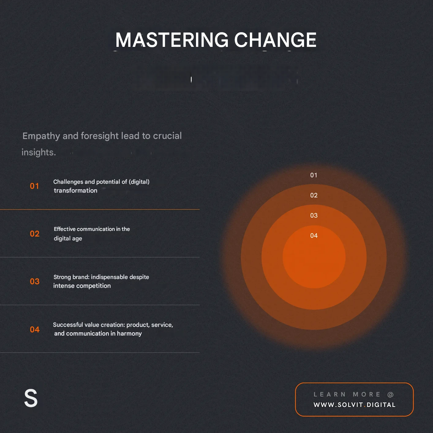 This content hub explores the diverse potentials and challenges that service companies encounter in the context of (digital) transformation. It highlights which paradigms need to be overcome, which dynamics determine the general environment and the market, and how these influence your customers' living environments. Furthermore, we answer the question of why so many companies perish due to their own success and which factors determine the success of every entrepreneurial bet.